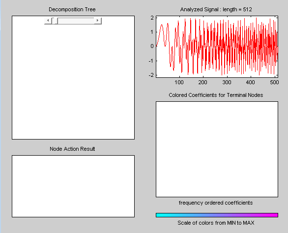 Вы можете продемонстрировать это самому себе, вернувшись в главное окно Vavelet Packet 1-D, вычисляя вейвлет-дерево, а затем повторяя сжатие.