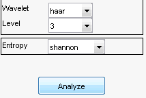 Установите соответствующие параметры для анализа. Выберите haar вейвлет, уровень 3и тип энтропии shannon. Нажмите кнопку «Анализ».
