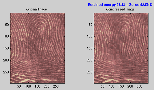 Обращаясь к вейвлетам, ФБР достигло степени сжатия 15:1. В этой заявке вейвлет-сжатие лучше, чем более традиционное сжатие JPEG, поскольку оно позволяет избежать небольших квадратных артефактов и особенно хорошо подходит для обнаружения разрывов (линий) в отпечатке пальца.