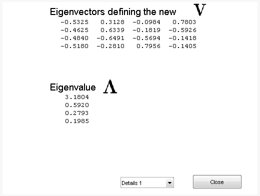 Затем автоматически выберите количество сохраненных основных компонентов с помощью правила Кайзера, введя