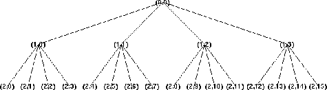 Точно так же, как в случае вейвлет-разложения, предыдущая структура 1-D может быть расширена для анализа изображения. Незначительные прямые изменения приводят к определениям, связанным с четвертичным деревом. На следующем рисунке показан пример глубины 2.