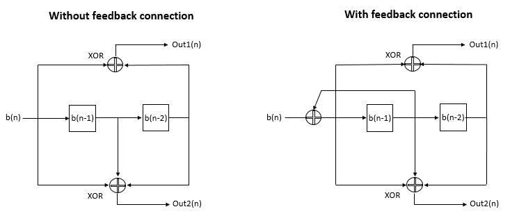 Блок сверточного кодера кодирует биты данных с использованием сверточного кодирования. Блок поддерживает кодовые скорости от 1/2 до 1/7 и длины ограничений от 3 до 9, включая как рекурсивные, так и нерекурсивные полиномы. Блок обеспечивает архитектуру, подходящую для генерации кода HDL и аппаратного развертывания.