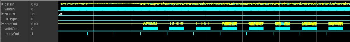 Этот сигнал показывает выходные данные, если для параметра Input data sample rate установлено значение Use maximum input data sample rate и выберите NDLRB из 25 с нормальным CP.
