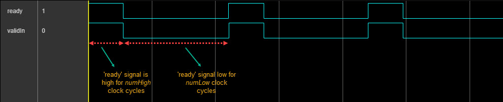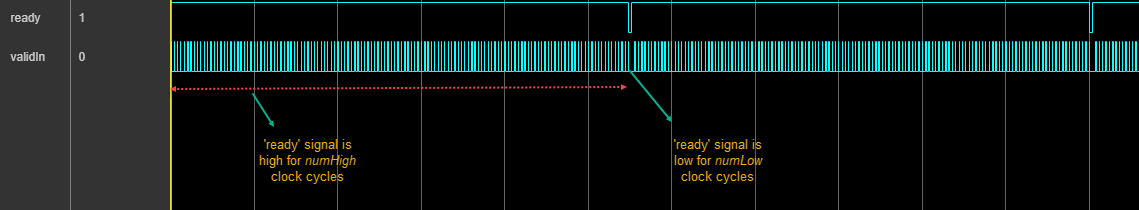 ready - Указывает, что блок готовУправляющий сигнал, указывающий, когда блок готов к новым входным данным. Когда это значение равно 1 (true), блок принимает входные данные на следующем шаге времени. Когда это значение равно 0 (false), блок игнорирует входные данные на следующем шаге времени.