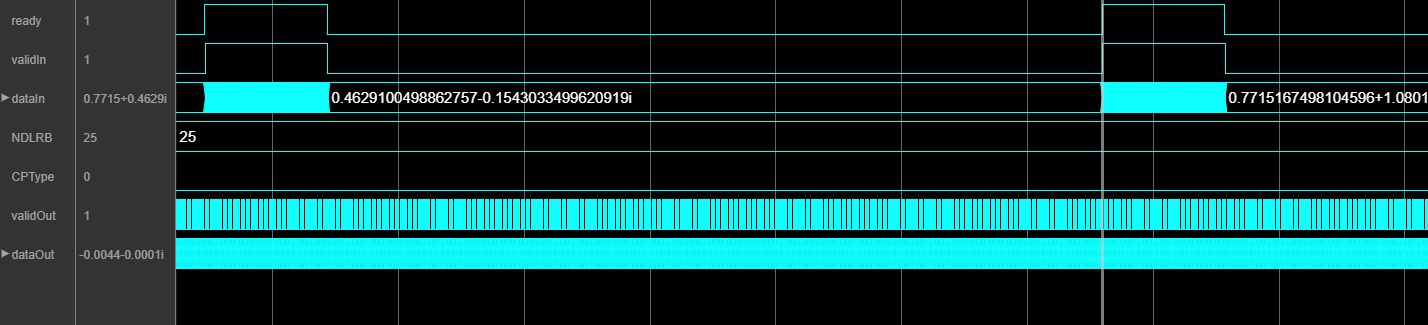 valid - Указывает допустимые выходные данныеУправляющий сигнал, указывающий на правильность данных из порта вывода данных. Блок устанавливает для этого значения значение 1 (true), когда модулированные выборки доступны на порту вывода данных.