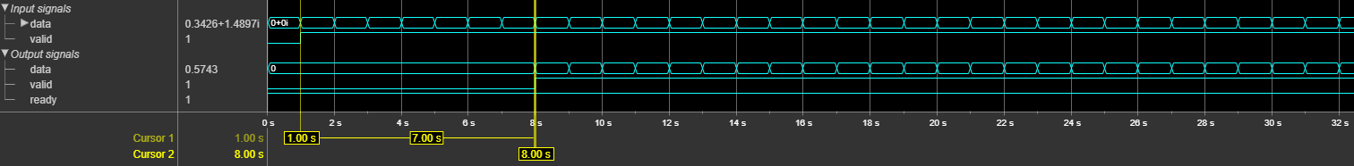 Выходной порт готовности указывает, когда блок может принять выборку входных данных. Для управления восходящими данными, поступающими в блок, можно использовать готовый выходной порт.