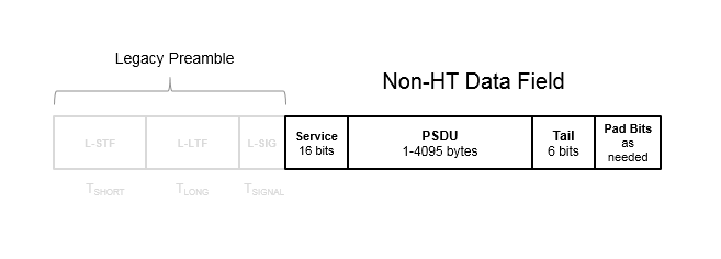 Поле данных без высокой пропускной способности (не-HT Data) используется для передачи кадров MAC и состоит из поля обслуживания, PSDU, хвостовых битов и битов pad.