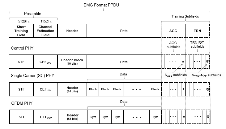 DMG относится к полям преамбулы, отформатированным для связи с 802.11ad™ данными. В разделе 20 [1] определяются и описываются уровень PHY DMG и PPDU.