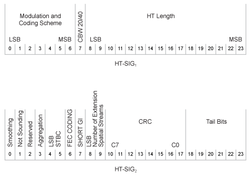 Подробное описание поля HT-SIG см. в разделе 19.3.9.4.3 стандарта IEEE Standd 802.11-2016.