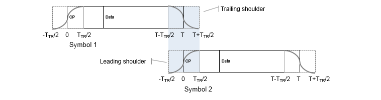 В противном случае время простоя добавляется в конце оконной части (после Т + TTR/2) последнего символа OFDM.