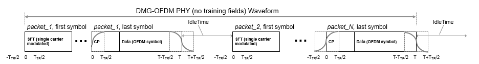 Такое же закольцовывание применяется для формы сигнала, состоящей из пакетов DMG OFDM-PHY с обучающими субполями, пакетов DMG-SC PHY или пакетов DMG-Control PHY.