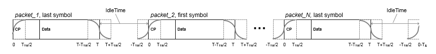 Если 'IdleTime' является 0, функция применяет оконную обработку, как это было бы для последовательных символов OFDM в пакете.