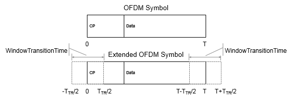 Когда применяется оконная обработка, функция добавляет переходные области к переднему и заднему фронту символа OFDM. Оконное отображение увеличивает длину символа OFDM на WindowTransitionTime (TTR).
