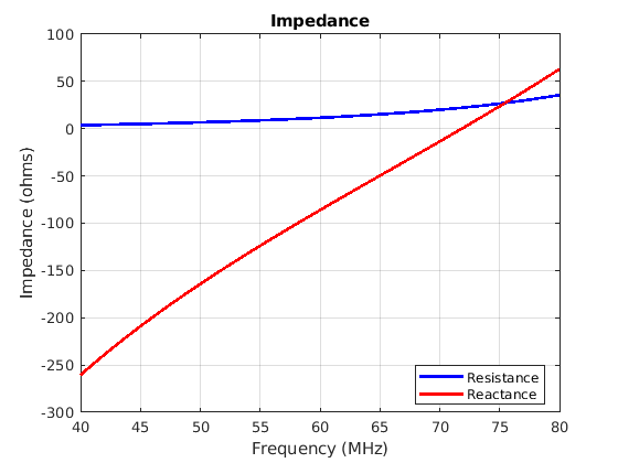 figure; impedance(monopole,linspace(40e6,80e6,41))