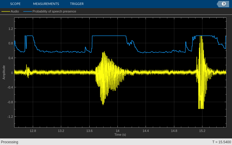 = VAD(audioIn)audioIn, и возвращает вероятность того, что речь присутствует. Это также возвращает предполагаемое отклонение шума на интервал частоты.