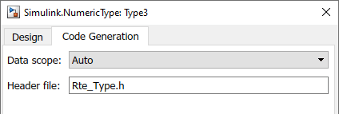 Сопоставьте тип данных Type3 с файлом заголовка Rte_Type.h. В диалоговом окне объекта типа данных, Code Generation вкладке, установите Header file равным Rte_Type.h. Нажмите Apply.