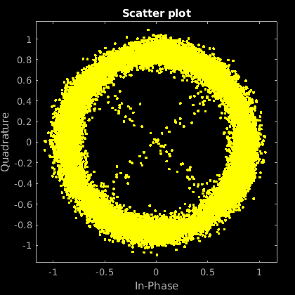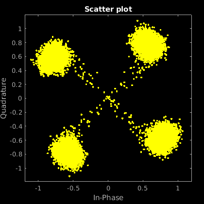 data = randi([0 M-1],numSymbols,1); tx = pskmod(data,M,pi/4); % OQPSK delayedSym = systemDelay(filter(mpChan,1,tx)); rx = awgn(delayedSym,snr,'measured');