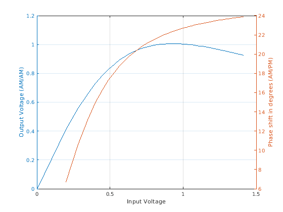 Обновление testPA.m вспомогательная функция для построения и анализа характеристик ввода-вывода при не заданных по умолчанию Memoryless Nonlinearity настройки блоков.