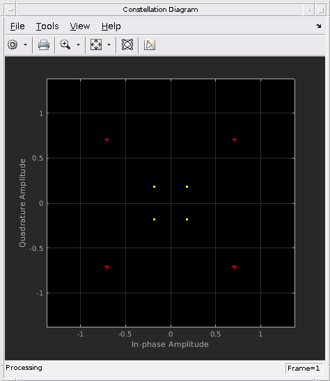 constDiagram.ShowReferenceConstellation = true; constDiagram(rxSig)