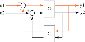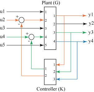 Из рисунка, модель с обратной связью sys имеет u как входной вектор и y как выходной вектор. Обе модели, sys1 и sys2, должны быть непрерывными или дискретными с одинаковыми шагами расчета.