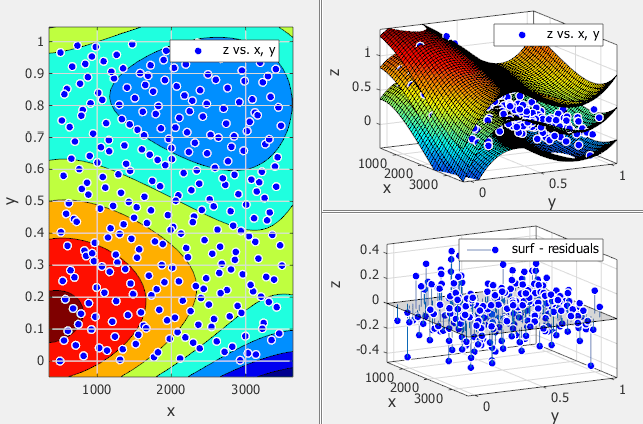 Если вы подбираете поверхность, основной график показывает подгонку поверхности. Вращение с перетаскиванием мыши или Rotate 3D является режимом мыши по умолчанию для объемных поверхностных диаграмм в Аппроксимирование кривыми прил. режим вращения в Аппроксимирование кривыми приложении аналогичен Rotate 3D в MATLAB® рисунки. Можно изменить режим мыши для манипулирования графиками так же, как и для кривых графиков. См. «Использование масштаба, панорамирования, Data Cursor и исключения выбросов».