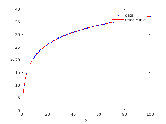 x = linspace(1,100); y = 5 + 7*log(x); myfittype = fittype('a + b*log(x)',... 'dependent',{'y'},'independent',{'x'},... 'coefficients',{'a','b'})