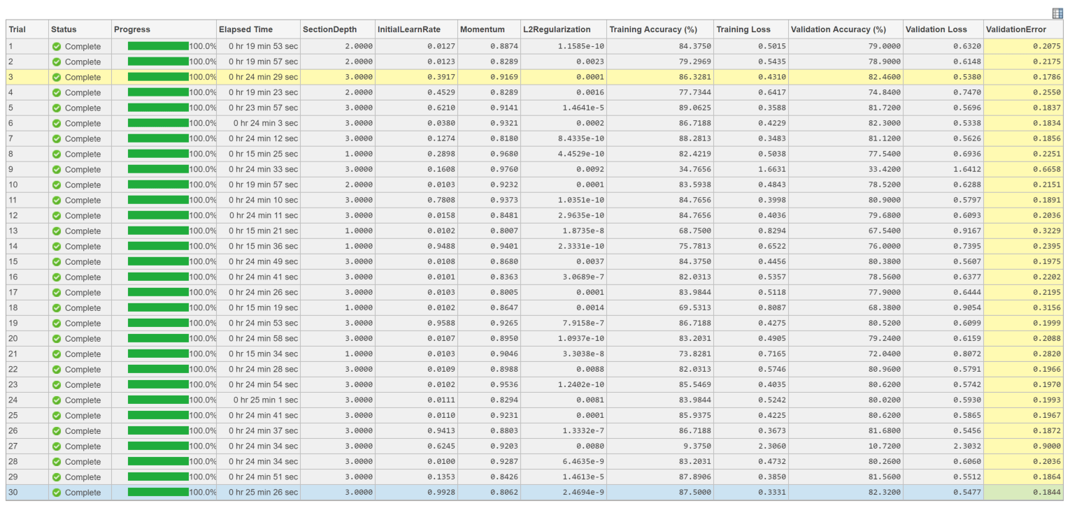 trainingOptions | trainNetwork | bayesopt (Statistics and Machine Learning Toolbox) | bestPoint (Statistics and Machine Learning Toolbox) | optimizableVariable (Statistics and Machine Learning Toolbox)