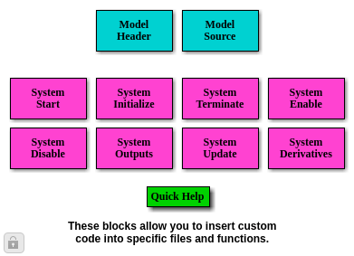 Файл определяет тип структуры, который содержит параметры блоков данные. Для примера параметр Gain блока Gain появляется как поле Gain_Gain. Другие поля структуры представляют другие параметры блоков и переменные рабочей области из модели, включая начальные условия для сигналов и состояний.