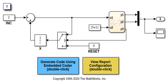 В дополнение к Embedded Coder®, вы можете использовать другие продукты для верификации кода. Для примера, Simulink® Requirements™, Simulink Test™ и Polyspace® товары.
