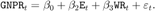 Рассмотрим множественную линейную регрессионую модель, которая предсказывает реальный валовой национальный продукт США (GNPR) с использованием линейной комбинации общей занятости (E) и реальная заработная плата (WR).