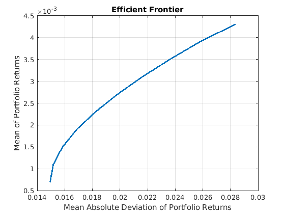 Можно использовать PortfolioMAD объект несколькими способами. Чтобы настроить задачу оптимизации портфеля в PortfolioMAD объект, самый простой синтаксис: