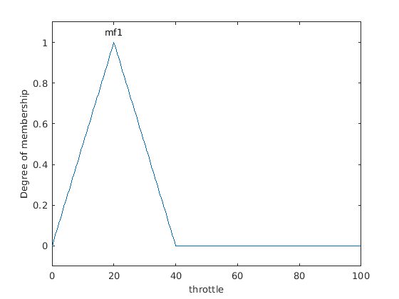 fis = addMF(fis,"throttle","trimf",[0 20 40],'VariableType',"output"); plotmf(fis,"output",1)