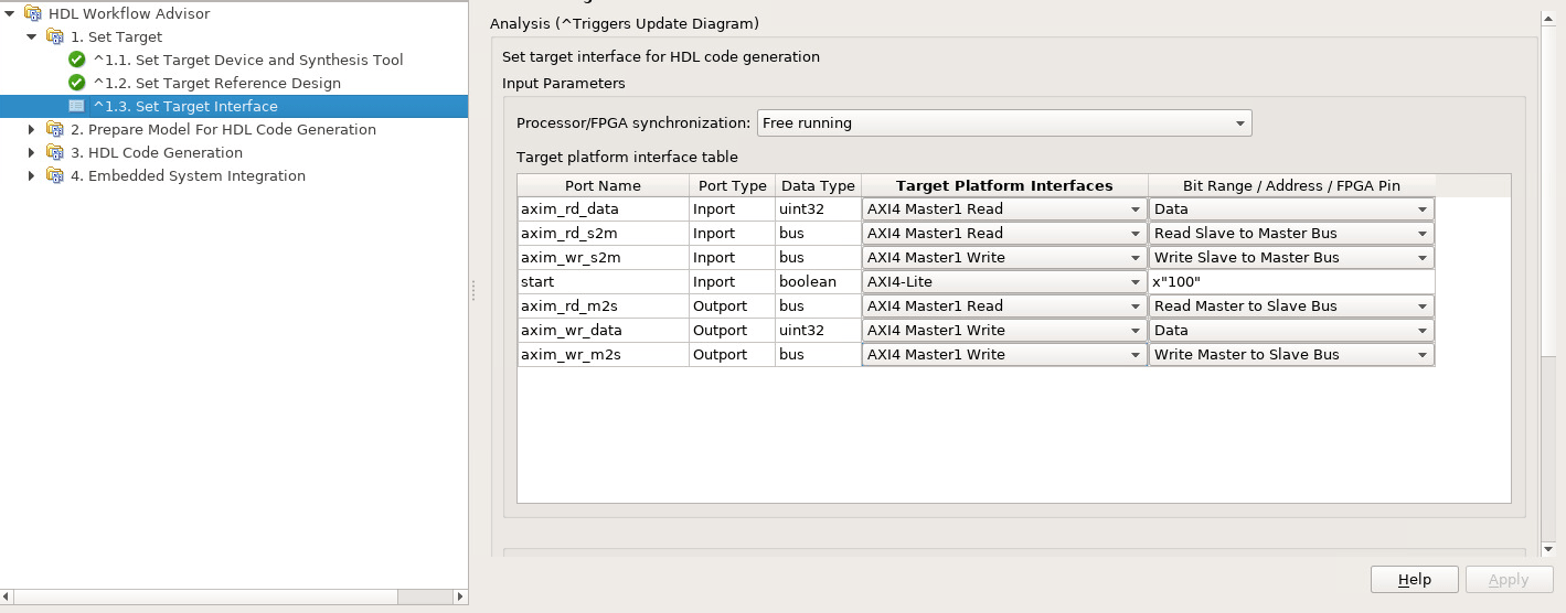 Задайте интерфейс и атрибуты пользовательского однокристального исходного проекта. После определения и регистрации исходного проекта можно использовать рабочий процесс генерации IP-ядра в HDL Workflow Advisor.