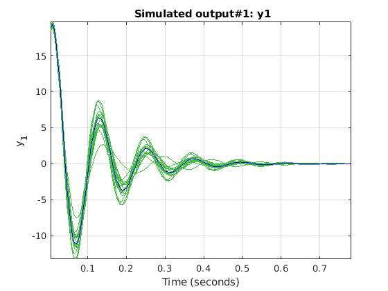 Параметры возмущенных реализаций sys согласуются с ковариацией параметров исходной модели, sys. Если sys не содержит параметра ковариации информации, 10 симулированные отклики идентичны. Для получения информации о том, как ковариационная информация параметра используется для генерации возмущенных моделей, см. «Генерация возмущений идентифицированной модели».