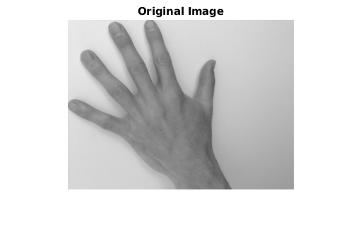 A = imread('hands1.jpg'); I = im2gray(A); figure imshow(I) title('Original Image')