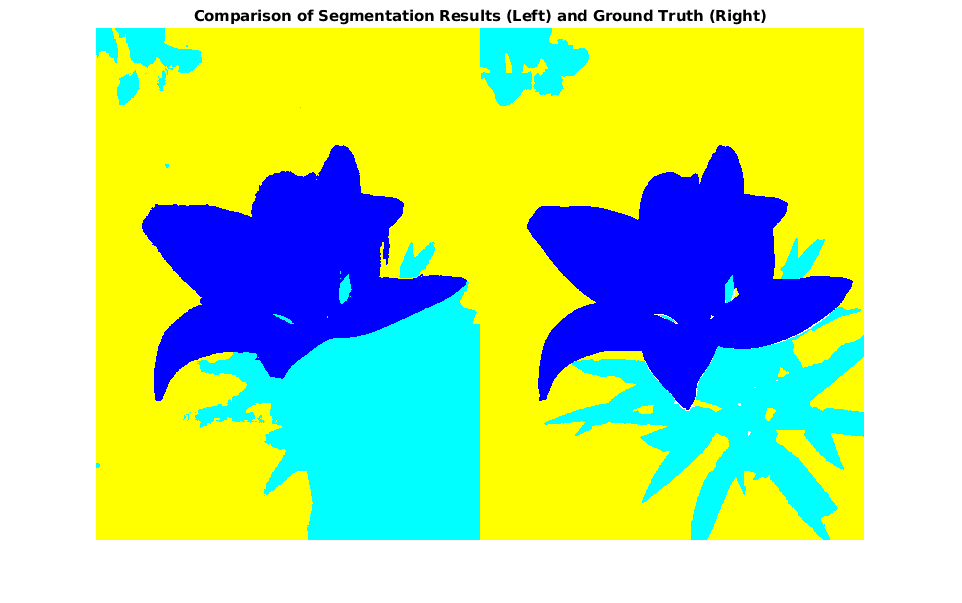 L_groundTruth = double(imread('yellowlily-segmented.png'));Визуально сравните результаты сегментации с основной истиной.