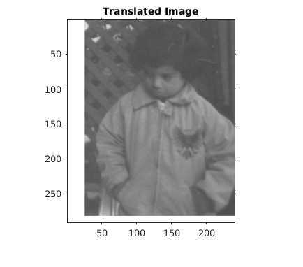 перемещает изображение B = imtranslate(A,translation)A вектором 2-D или 3-D преобразования, заданным в translation.