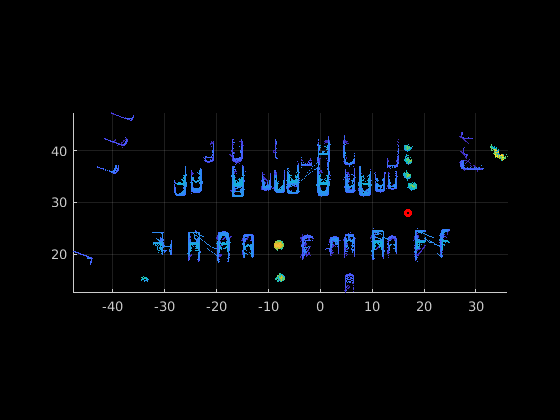 The pcmapsegmatch объект создает карту сегментов и функций и использует алгоритм соответствия сегментов (SegMatch [1]) для распознавания мест. Этот подход соответствия сегментов является устойчивым к динамическим препятствиям и надежным на больших шкалах окружениями. Объект хранит функции и сегменты, а также соответствующие им идентификаторы представлений. Используйте идентификаторы представлений, чтобы связать функции с представлением в объекте набора представлений облака точек, pcviewset, для создания карты.
