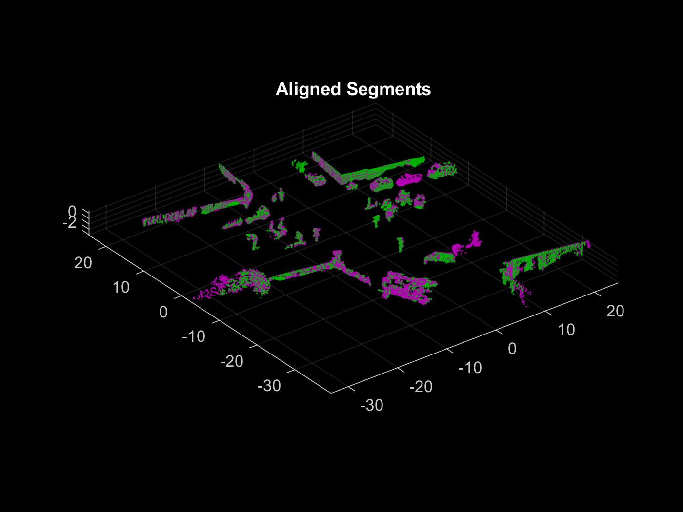 ptCloudSegments1 = pccat(segments1); ptCloudSegments2 = pccat(segments2); tformedPtCloudSegments1 = pctransform(ptCloudSegments1, tform);