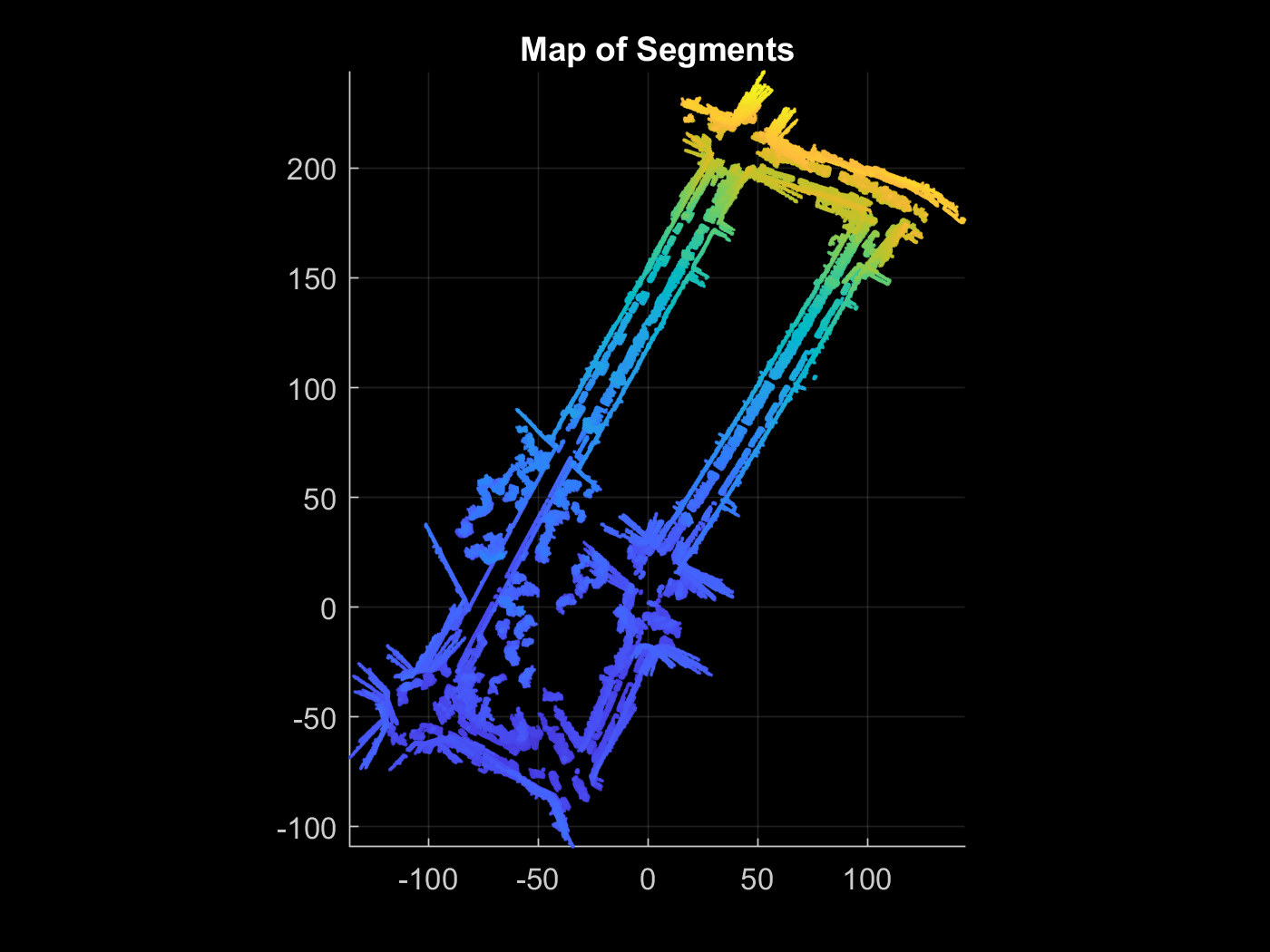 В этом примере показано, как создать карту с данными лидара и локализовать положение транспортного средства на карте с помощью SegMatch [1], алгоритма распознавания места на основе соответствия сегмента.