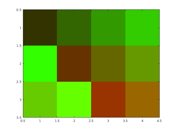 C = [1 2 3 4; 5 6 7 8; 9 10 11 12]; im = image(C); colormap(colorcube)
