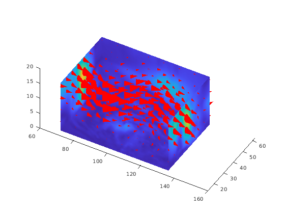 coneplot(...,' задает метод интерполяции, который будет использоваться. method')method можно linear, cubic, или nearest. linear является значением по умолчанию. (См. interp3 для обсуждения этих методов интерполяции.)