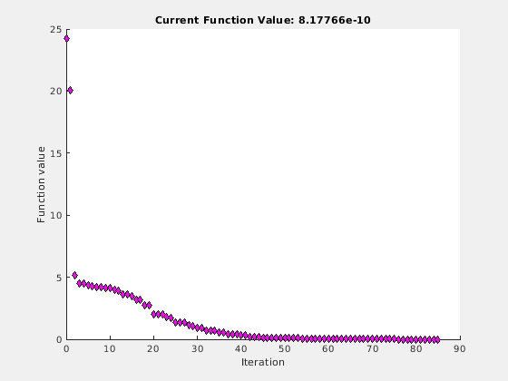 fminsearch использует метод симплексного поиска Lagarias et al. [1]. Это метод прямого поиска, который не использует числовые или аналитические градиенты, как в fminunc (Optimization Toolbox). Алгоритм подробно описан в fminsearch Algorithm. Алгоритм не гарантированно сходится к локальному минимуму.