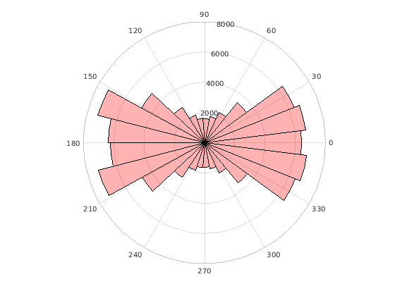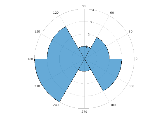 Пример: polarhistogram(theta,'FaceColor','g') создает гистограмму, график с зелеными полосами.