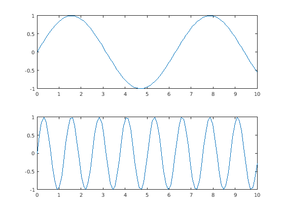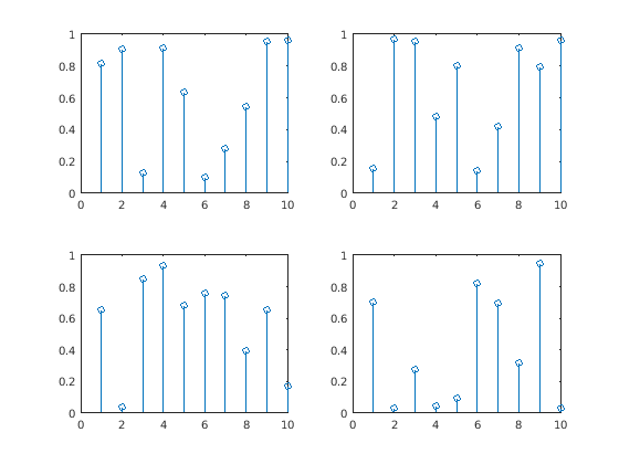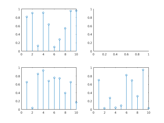 subplot( разделяет текущую фигуру на m,n,p)m-by- n сетка и создает оси в положении, заданном p. MATLAB® числа подграфиков положения по строкам. Первый подграфик является первым столбцом первой строки, второй подграфик является вторым столбцом первой строки и так далее. Если оси существуют в заданном положении, то эта команда делает оси текущей системы координат.