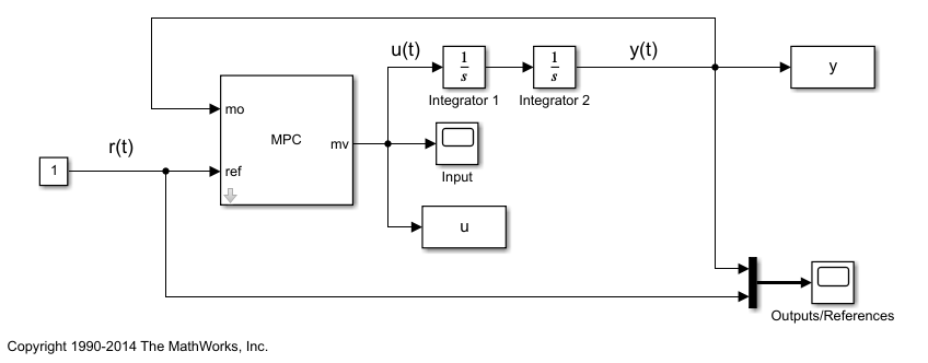 Создайте симуляцию замкнутого цикла Simulink с помощью блока MPC Controller, с mpcobj объект прошел как параметр, чтобы управлять объектом с двойным интегратором. В данном примере откройте уже существующие gpudemo Модель Simulink.