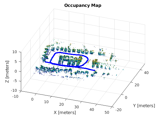 Одновременная локализация и картография (SLAM) использует алгоритмы Mapping и Localization and Pose Estimation, чтобы создать карту и локализовать ваше транспортное средство на этой карте одновременно. Использование lidarSLAM чтобы настроить свой собственный алгоритм SLAM, который обрабатывает сканы лидара и оценки положения одометрии, чтобы итерационно создать карту. Использовать buildMap чтобы взять записанные и отфильтрованные данные для создания карты с помощью SLAM. Приложение SLAM Map Builder позволяет вручную изменять относительные положения и выравнивать сканы, чтобы улучшить точность вашей карты.