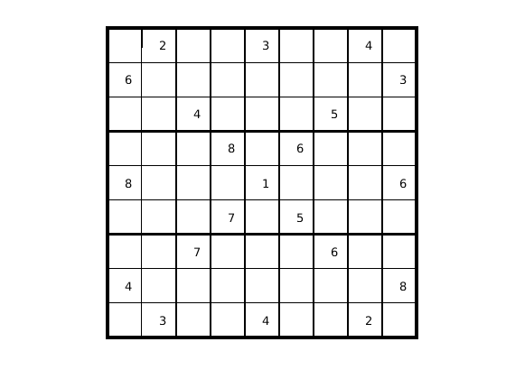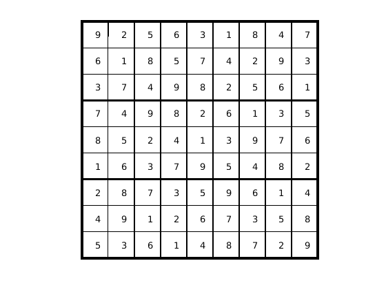 drawSudoku(B) % For the listing of this program, see the end of this example.