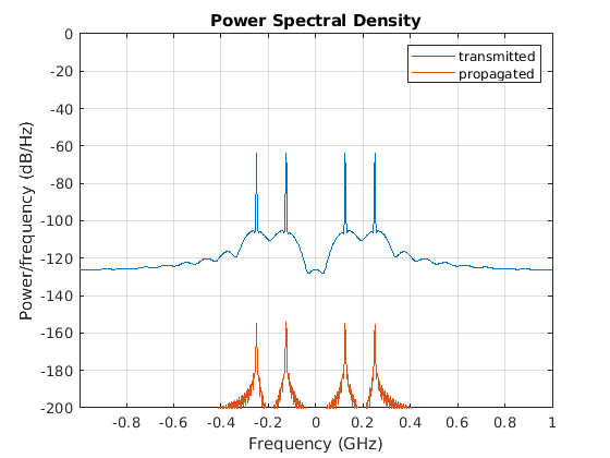 Как и phased.WidebandFreeSpace Системный объект, phased.WidebandLOSChannel Системный объект поддерживает двухстороннее распространение.