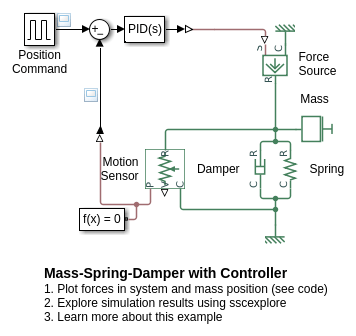 Связи R и C являются портами механической передачи, которые соединяют блок с узлами, движение которых контролируется. Связи V и P являются выходными портами физического сигнала для скорости и положения, соответственно.